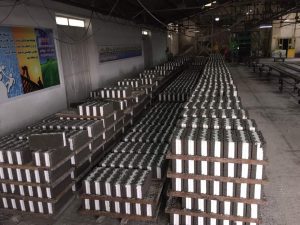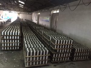 بلوک های تولیدی بر روی پالت های فلزی بسته بندی شده و جهت حمل با تریلر آماده می شوند.