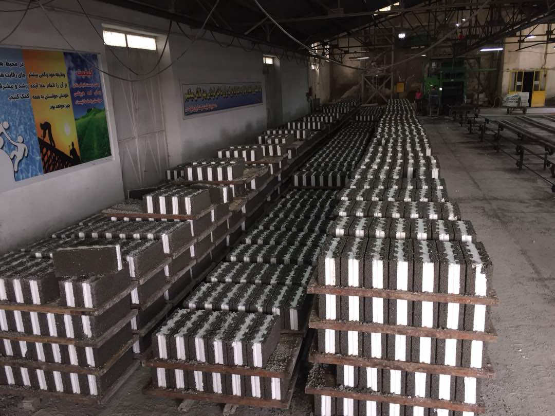 ملات توسط نقاله وارد دستگاه پرس شده و با توجه به سفارش مشتری و قالب نصب شده بر روی پرس، بلوک مورد نظر تولید و پس از یک روز نگهداری در سالن مسقف، به انبار منتقل می گردند.